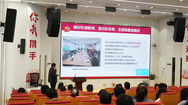 报告会上,来自广州国际校区的22名基层党支部书记重点围绕贯彻落实党的二十大精神、落实主体责任、增强党支部政治功能和组织功能、促进党支部和师生党员作用发挥等方面总结过去一年来的工作做法,查找存在问题,明确改进方向。各党支部书记既客观总结成绩、展示亮点,又自我剖析、查摆问题,更立足发展、锚定方向,亮出自己的“年度答卷”。报告会最后,广州国际校区党委负责人号召校区各基层党支部以党的二十大精神为指引,积极谋划和推进广州国际校区粤港澳大湾区国际化教育改革个案试点及新工科人才培养示范区相关工作,不断开创基层党建工作新局面,为广州国际校区发展提供坚强的政治和组织保证,助推广州国际校区各项工作再上新台阶。(图/文 广州国际校区党委 编辑/孙彦东)