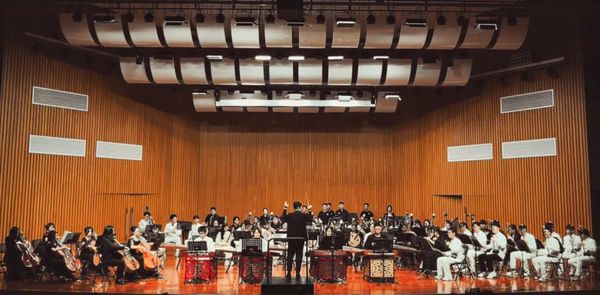 演出日的音乐厅座无虚席,两校民乐团同台竞奏,让在场师生浸润在民族器乐的磅礴气势和文化意蕴中,感受传统音乐的魅力: