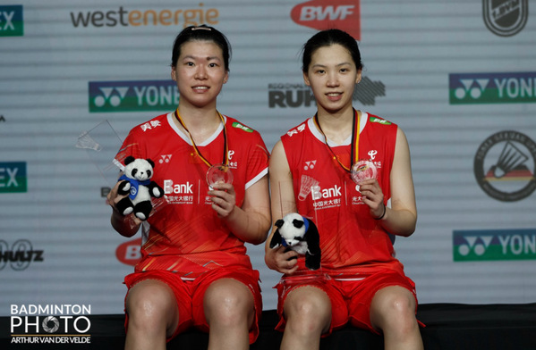 德国羽毛球公开赛是欧洲赛季的揭幕之战。李怡婧和罗徐敏配合默契、技术精湛、斗志坚韧,一路过关斩将,半决赛中以2比0击败中国台北组合许雅晴、林婉清,决赛对阵在1月印尼大师赛上曾战胜过自己的保加利亚姐妹花加布列拉、斯蒂芬妮。此番再次较量,二人以21比7、13比21、21比18击败对手,首次夺得世界巡回赛冠军。