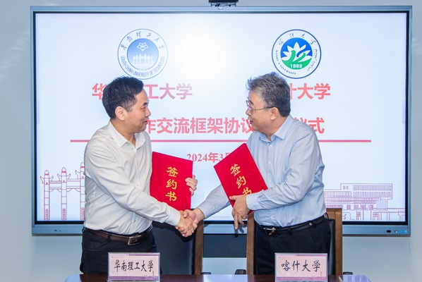 为贯彻落实第九次援疆工作座谈会精神,3月28日,华南理工大学与喀什大学合作交流框架协议签约仪式在五山校区举行。广东省教育厅副厅长程大欣、华南理工大学副校长徐向民、喀什大学党委副书记赵斌出席仪式。