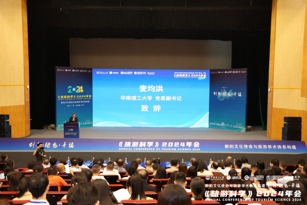 由华南理工大学、上海师范大学共同举办的《旅游科学》2024年会于4月11至14日在华南理工大学大学城校区举行,来自国内外旅游学界和业界700余人参加活动,学校党委副书记麦均洪、上海师范大学党委副书记刘晓敏、广东省文化和旅游厅副厅长张奕民出席开幕式并致辞。