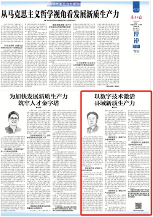 南方日报5月6日第A08版报道(作者 吴志才,系华南理工大学广州城乡融合发展研究院院长、数字乡村与文旅可持续发展重点实验室主任、教授,广东省“百千万工程”专家智库首批专家委员)近日,11部门联合印发《关于开展第二批国家数字乡村试点工作的通知》,明确到2026年底,试点地区数字乡村建设取得显著成效,乡村信息化发展基础更加夯实,城乡“数字鸿沟”加快弥合,涉农数据资源实现共享互通,乡村数字化应用场景持续涌现,数字经济促进共同富裕作用凸显,乡村振兴内生动力不断增强。作为数字经济大省,广东要通过科技创新引领,以数字技术激活县域新质生产力,以新质生产力赋能产业振兴,通过构建新农具、新农人、新农业、新农村“四新”全方位县镇村科技服务体系,实现农业产业体系高水平、农业生产体系高科技、农业经营体系高效能的“三高”目标,全面推动“百千万工程”落地见效。