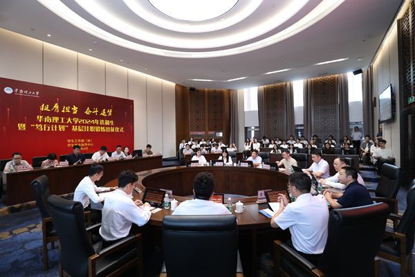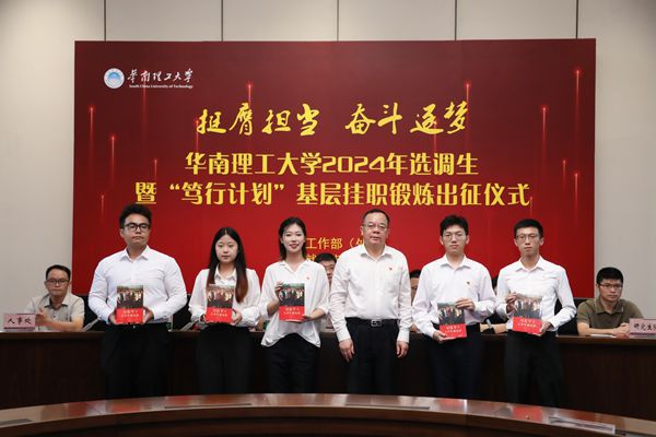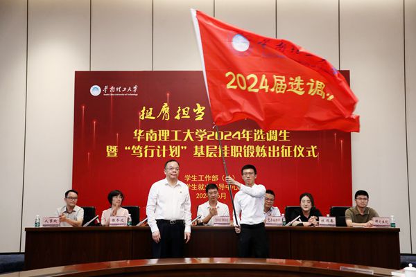 6月24日,华南理工大学2024年“挺膺担当·奋斗逐梦”选调生暨“笃行计划”出征仪式在五山校区举行。学校副校长李正出席并为2024年选调生和参加“笃行计划”学生出征授旗。广州市委组织部公务员一处二级调研员谢岳雄在致辞中向同学们提出期待,往届选调生代表、广西壮族自治区人民政府办公厅人事处罗恢泓校友作了经验交流。
