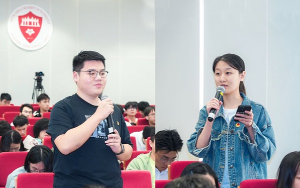 互动环节中,李卫青就“在地国际化”与“双向国际化”背景下学生发展等问题,与现场师生进行交流,勉励同学们独立思考、勇于探索,顺应时代潮流,书写青春力量。