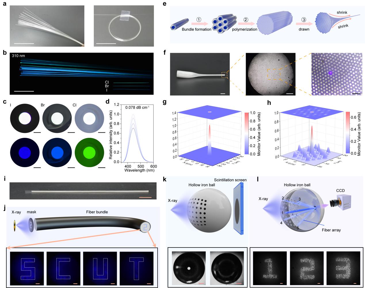相关成果以“Integrated copper-halide activated scintillator fiber array for remote high resolution X-ray imaging”为题,发表于Nature Communications。华南理工大学材料科学与工程学院董国平教授为通讯作者,博士生章皓、黄雄健副教授为共同第一作者。该研究工作得到了国家自然科学基金项目、博士后创新人才计划项目、广东省基础与应用基础研究基金项目、发光材料与器件全国重点实验室和中国国家留学基金委资助项目等科研项目的资助。
