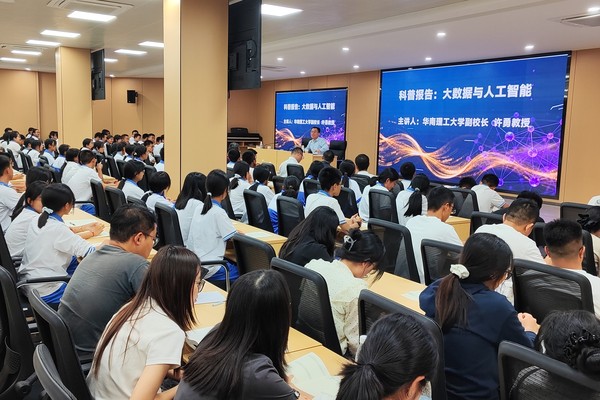 在云县第一完全中学,许勇作了题为《大数据与人工智能》的科普讲座,通过具体案例,系统、生动地介绍了大数据与人工智能技术的发展历程、核心概念、实际应用、未来前景与挑战,激发青年学生的科学探索热情。