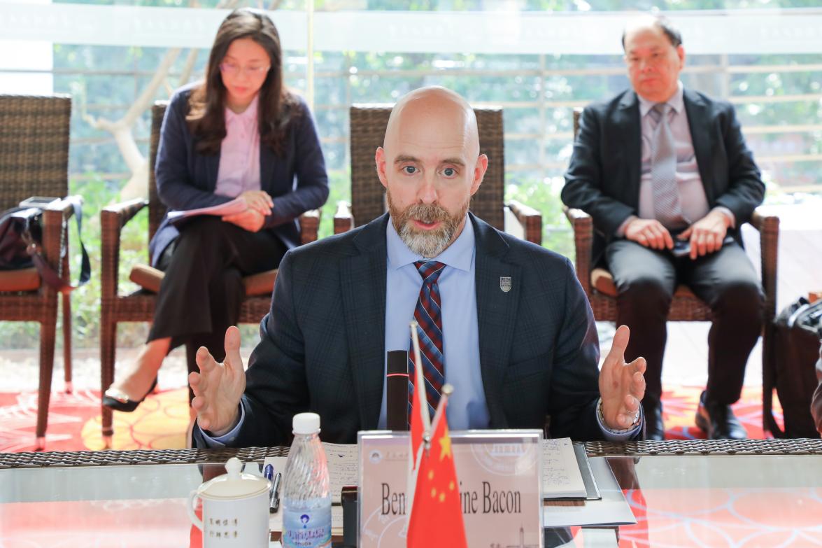 Benoit-Antoine Bacon高度赞赏华南理工大学的办学成就,并介绍了不列颠哥伦比亚大学的基本情况与国际化战略。他指出,不列颠哥伦比亚大学实力卓著,特别是林学院相关学科与华南理工大学优势学科高度契合,双方互为战略合作伙伴。期待未来能够继续深入拓展教学与科研合作。他表示,当前正是中加两国深化合作战略机遇期,两所顶尖大学的强强联合,将为双方师生创造更多机遇,结出丰硕的共赢成果。