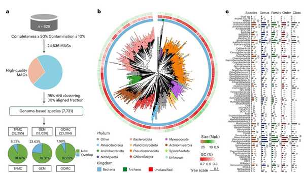 针对这一关键性盲区,研究团队通过在全国31个省级行政区取样,同时系统整合来自全球六大洲污水处理厂的活性污泥宏基因组数据,回收重建了24536个宏基因组组装基因组,其中75%为新物种;建立了目前为止最大、最全面、包含2400余万非冗余基因家族的全球污水处理厂活性污泥微生物基因目录。
