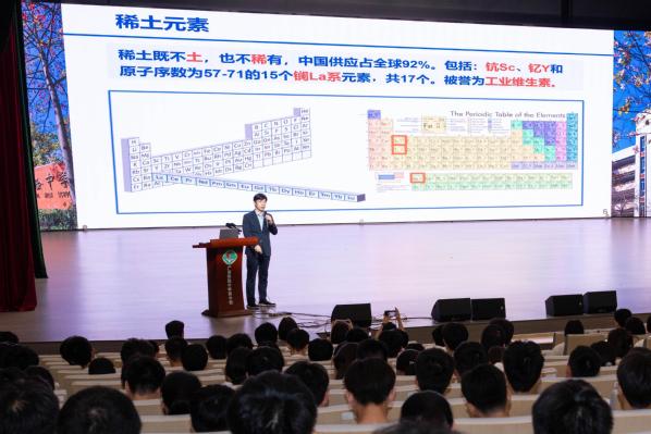 杨中民以“稀世之光 耀启未来”为题为师生作科普讲座。他以“光”为核心,用生动、通俗的语言讲述了光的本质、稀土发光特性,以及激光在传统产业升级、医疗、通信、量子科技、军事、航空航天等多个领域中的广泛应用,将光科技的重要性娓娓道来,启发学子投身科技报国。同时,他还介绍了华南理工大学的办学实力和特色,鼓励省实学子关注并报考华南理工大学,在优质的教育资源浸润中成长成才,未来为国家科技自立自强贡献力量。