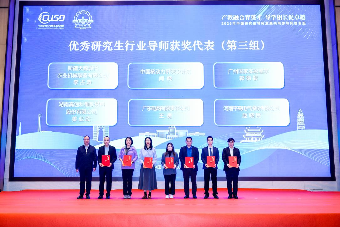 大会举行了优秀导师与团队颁奖仪式,对在研究生培养工作中表现突出的个人与团队予以表彰。电力学院谢从珍教授课题组的研究生校外导师、广州供电局电力科学研究院高级技术总监王勇获“优秀研究生行业导师”表彰。他立足真实高电压场景和关键工程技术难题,开展研究生指导,注重引导凝练科学问题,提升理论创新与工程应用贯通能力,取得显著育人成效,充分彰显了学校在校企协同育人、行业导师队伍建设方面的建设成果。