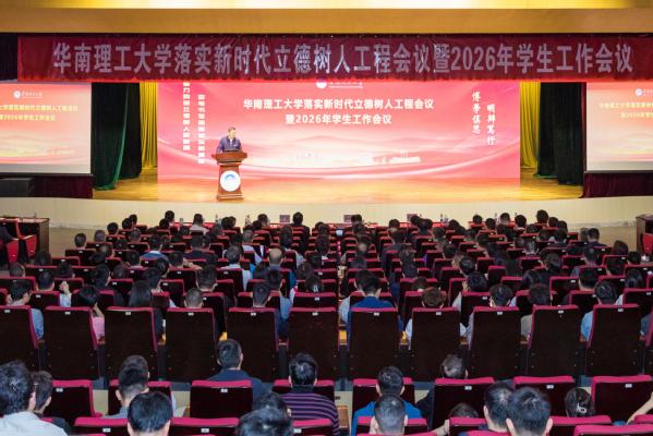 为高质量推动新时代立德树人工程在学校落地见效,进一步总结经验、分析形势,部署推进“铸魂育人”攻坚行动,4月24日,华南理工大学召开落实新时代立德树人工程会议暨2026年学生工作会议。学校党委书记唐洪武出席会议并讲话,副校长李正、林艺文参加会议。