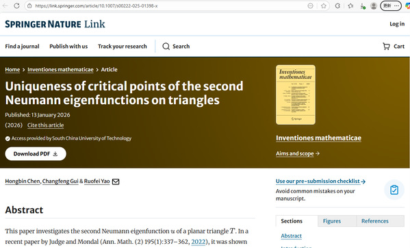 破解“热点猜想”关键难题 华南理工成果再登世界四大顶尖数学期...